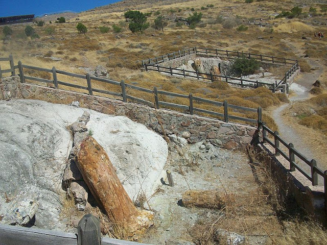 Οι ηφαιστειακές εκρήξεις προκάλεσαν την έξοδο τεράστιων ποσοτήτων λάβας, στάχτης και άλλων ηφαιστειακών υλικών που σκέπασαν μεγάλες εκτάσεις. Αυτά τα πυροκλαστικά υλικά κινήθηκαν από τα ανατολικά προς τα δυτικά και σκέπασαν το μεγάλο, πυκνό και πλούσιο δάσος που υπήρχε την εποχή εκείνη. Η κίνηση τους ήταν ταχύτατη και κάλυψε αμέσως τους κορμούς, τα κλαδιά, τους καρπούς, και τα φύλλα των δέντρων. Η απομόνωση των φυτικών ιστών από τις επιφανειακές συνθήκες και η έντονη υδροθερμική κυκλοφορία, θερμών ρευστών πλούσιων σε πυρίτιο που ακολούθησε, επέτρεψε την τέλεια απολίθωση των φυτικών ιστών, κάτω από ιδανικές συνθήκες.