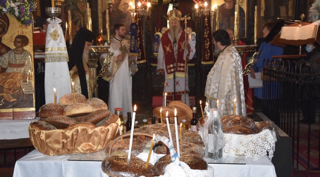 Ακολούθησε η ευλογία του φαγητού από τον παριστάμενο στη γιορτή Μητροπολίτη Μυτιλήνης κ. Ιάκωβο και μοιράστηκαν στους παριστάμενους οι μαγειρεμένοι καρποί της γης, περισσότεροι από 200 μερίδες φαγητού, καθώς και οι δεκάδες άρτοι και τα κόλλυβα, στη μνήμη όσων έμειναν πίσω ή πέρασαν πρόσφυγες στη Λέσβο και στην άλλη Ελλάδα.