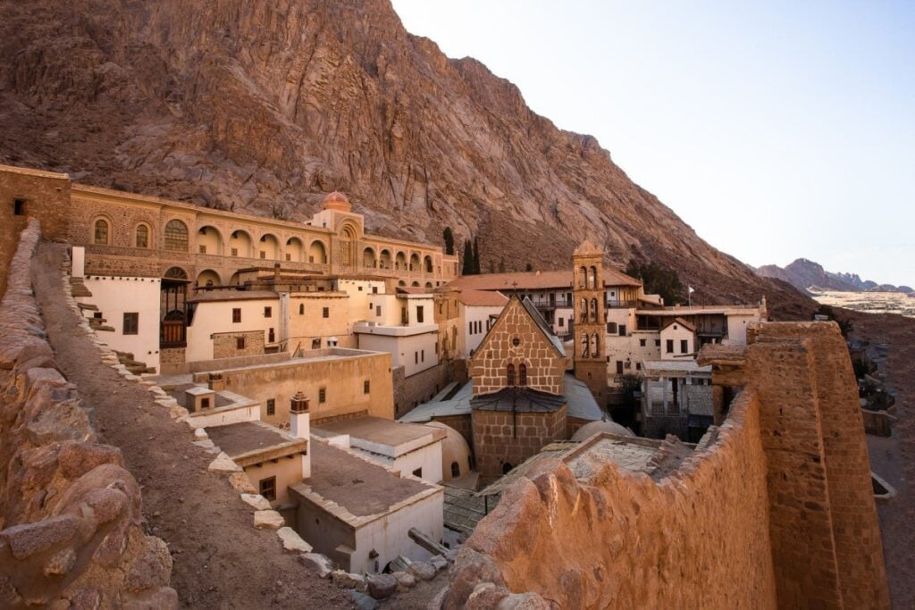 Το μοναστήρι της Αγίας Αικατερίνης του 6ου αιώνα, που διοικείται από την Ελληνορθόδοξη Εκκλησία, βρίσκεται επίσης εκεί -και φαίνεται πως οι μοναχοί του θα παραμείνουν, καθώς οι αιγυπτιακές αρχές, υπό την πίεση της Ελλάδας, διέψευσαν ότι σκοπεύουν να το κλείσουν.