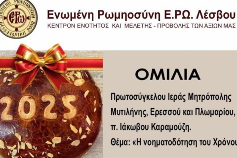 Η Ενωμένη Ρωμηοσύνη (Ε.ΡΩ.) Λέσβου σας προσκαλεί στην κοπή της βασιλόπιτας το Σάββατο 8 Φεβρουαρίου...