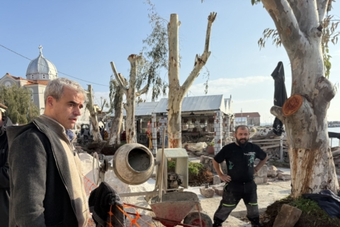Αυτοψία του Δημάρχου Μυτιλήνης Παναγιώτη Χριστόφα στο έργο ανακατασκευής πλακόστρωτου στην Παναγιούδα