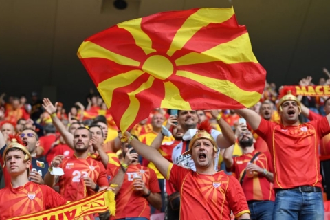 Euro 2020: Σκοπιανοι στις εξέδρες με πανώ «Μακεδονία» και περικεφαλαίες… αλά Μέγας Αλέξανδρος