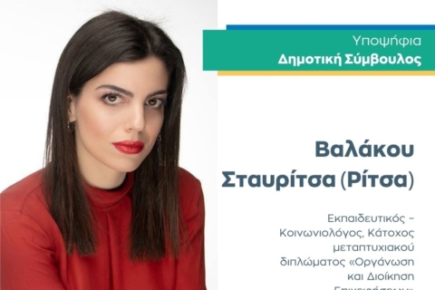 Ρίτσα Βαλάκου, Υποψήφια Δημοτική Σύμβουλος με επικεφαλής τον Παναγιώτη Χριστόφα “Να ξεφύγουμε από την αρνητική σύγκριση με άλλες πόλεις και να γίνουμε εμείς παράδειγμα προς μίμηση “