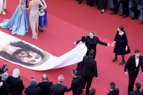 Κάννες: Mοντέλο εκνευρίστηκε με την ασφάλεια που δεν της επέτρεψε να δείξει το φόρεμά της με το πρόσωπο του Χριστού