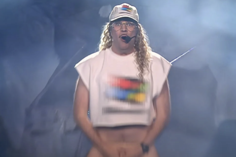 Ο Windows95man εμφανίστηκε στη σκηνή του διαγωνισμού γυμνός από τη μέση και κάτω...