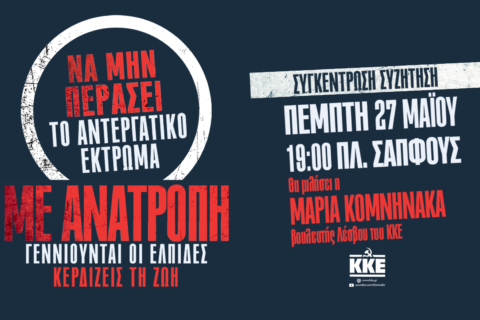 KKE: Πολιτική Συγκέντρωση – συζήτηση την Πέμπτη, 27 Μάη