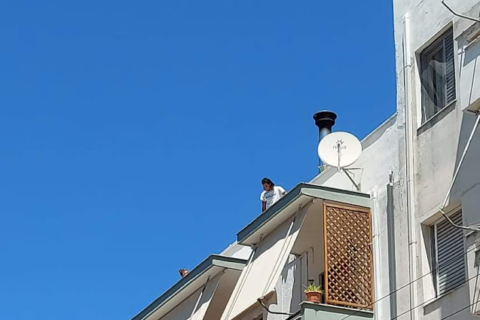 Έκτακτο: Αλλοδαπός απειλεί να πέσει στο κενό από ταράτσα πολυκατοικίας στην Μυτιλήνη