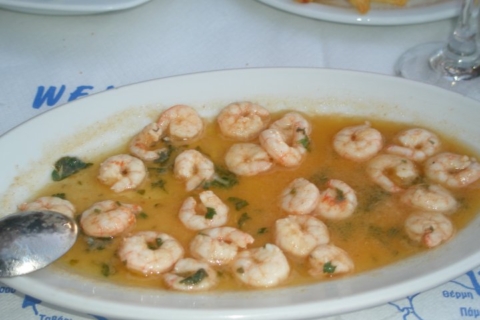 Γαρίδες σκορδάτες Μουριάς (Σκάλα Συκαμνιάς), από την Μυτιληνιά Διάλεκτο