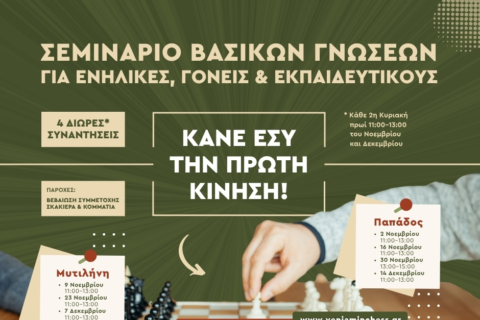 Ο Βενιαμίν διοργανώνει Σεμινάριο Βασικών Γνώσεων στο Σκάκι για ενήλικες