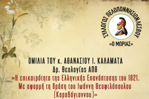 Σας προσκαλούμε στην εκδήλωση του Συλλόγου Πελοποννησίων Λέσβου ο Μωριάς την Κυριακή...