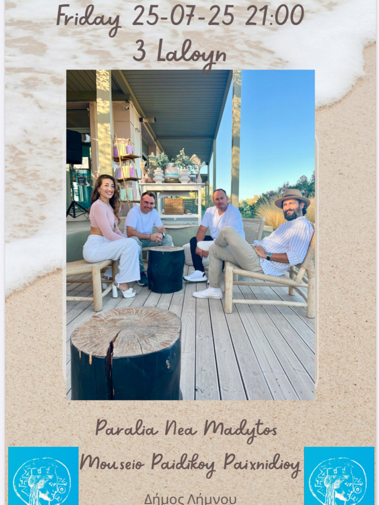 Ο Δήμος Λήμνου σας προσκαλεί σε υπαίθρια βραδινή συναυλία με το συγκρότημα 3 LALOUN BAND, στον χώρο της παραλίας Νέας Μαδύτου στη Μύρινα, την Παρακευή 25 Ιουλίου στις 21:00. Είσοδος ελεύθερη.