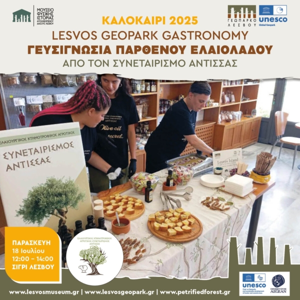 Οι εκδηλώσεις Λεσβιακής Γευσιγνωσίας πραγματοποιούνται στα πλαίσια των καλοκαιρινών εκδηλώσεων της Γιορτής Αγροτουρισμού 2025 που διοργανώνει και φέτος το Μουσείο Φυσικής Ιστορίας Απολιθωμένου Δάσους Λέσβου στις εγκαταστάσεις του στο Σίγρι, με στόχο την προβολή της γαστρονομίας της Λέσβου – Παγκόσμιο Γεωπάρκου UNESCO.