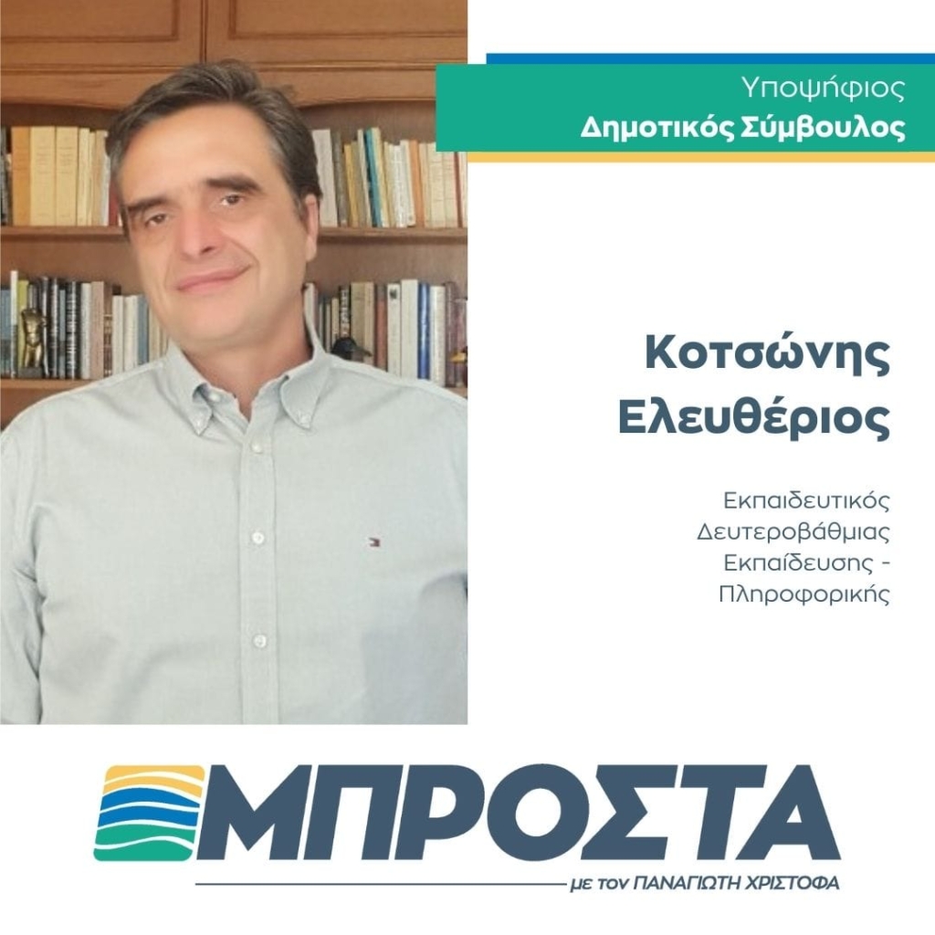Ελευθέριος Κοτσώνης, Υποψήφιος Δημοτικός Σύμβουλος με επικεφαλής τον Παναγιώτη Χριστόφα “Εμφορούμαι από την αγάπη για τον τόπο μου και τους ανθρώπους του “