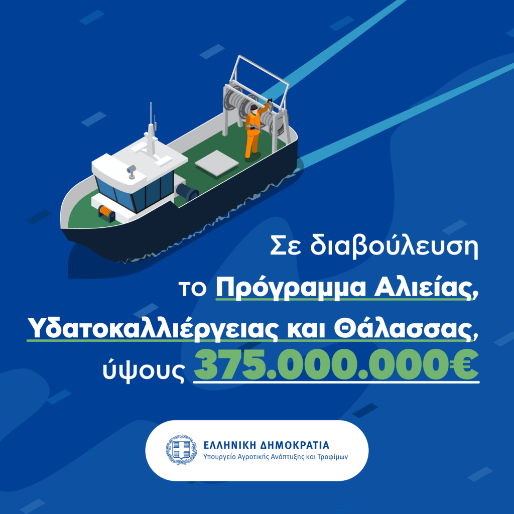 Δόθηκε στη δημοσιότητα το κείμενο διαβούλευσης του Προγράμματος Αλιείας, Υδατοκαλλιέργειας και Θάλασσας (ΠΑΛΥΘ) 2021-2027, ύψους 374.995.903 €., το οποίο θα χρηματοδοτηθεί από το Ευρωπαϊκό Ταμείο Αλιείας, Θάλασσας και Υδατοκαλλιεργειών (ΕΤΘΑΥ) για το οποίο έχει εκδοθεί ο Κανονισμός (ΕΕ) 1139/2021.