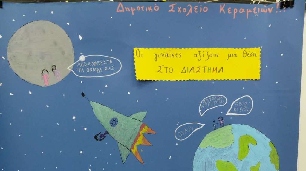 Οι μαθητές του Δημοτικού σχολείου Κεραμειών συμμετείχαν με ομιλία και έργα ζωγραφικής με θέμα τη συμμετοχή των Γυναικών στα διαστημικά ταξίαδια.