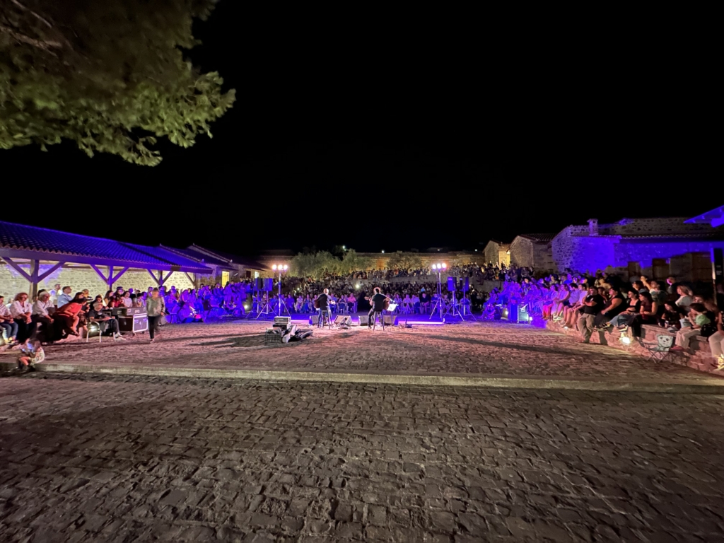 Στο φινάλε του Πολιτιστικού Πανοράματος ο αύλειος χώρος του Μουσείου Βιομηχανικής Ελαιουργίας, έγινε χθες μια όμορφη σκηνή όπου το πλήθος τραγουδούσε αγαπημένους στίχους του Ορφέα Περίδη κάτω από το αυγουστιάτικο φεγγάρι.