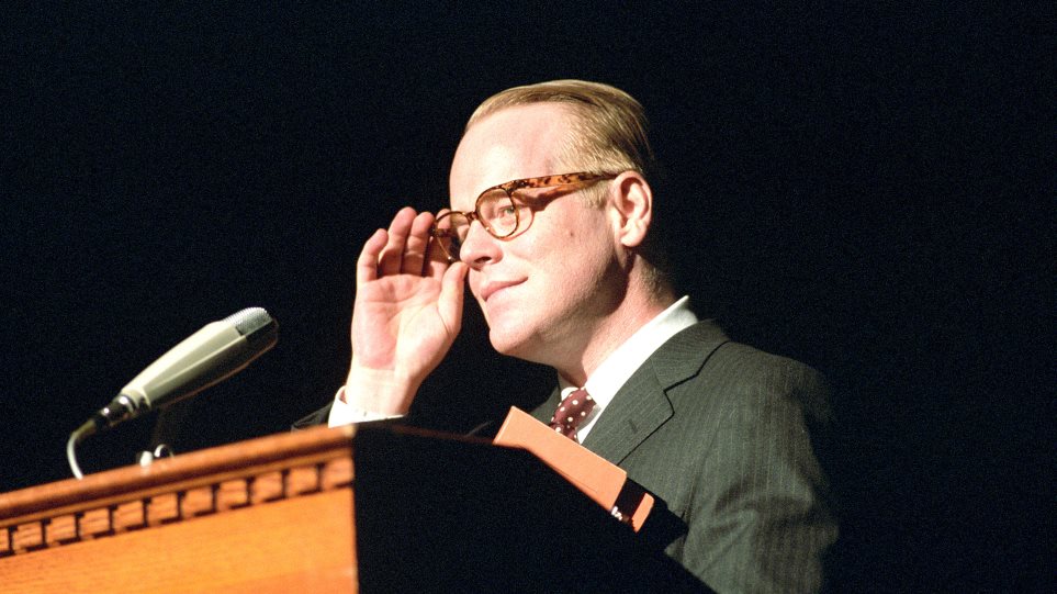 Βιογραφικό δράμα που αφηγείται τη ζωή του Τρούμαν Καπότε την περίοδο που έγραψε το βιβλίο του «Εν Ψυχρώ» (In Cold Blood). Με τους Φίλιπ Σέιμουρ Χόφμαν, Κάθριν Κίνερ, Κλίφτον Κόλινς, Κρις Κούπερ.