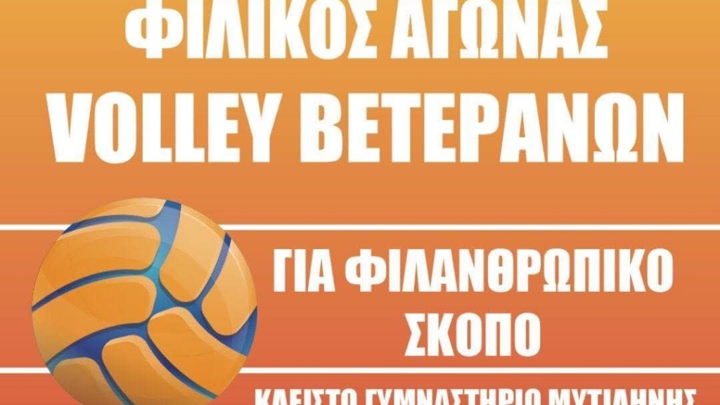 Φιλικούς αγώνες βόλεϊ βετεράνων με φιλανθρωπικό σκοπό διοργανώνουν ο Δήμος Μυτιλήνης και ο Σύνδεσμος Κοινωνικής Προστασίας & Αλληλεγγύης, με συνδιοργανωτή την Τοπική Επιτροπή Πετοσφαίρισης Λέσβου, το Σάββατο 4 Απριλίου στο Κλειστό Δημοτικό Γυμναστήριο της Νεάπολης.