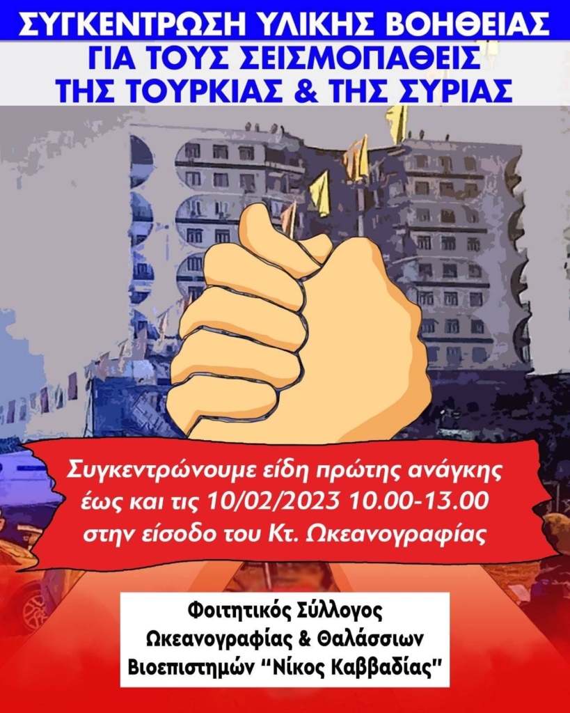 Φοιτητικός Σύλλογος Ωκεανογραφίας και Θαλάσσιων Βιοεπιστημών- Παράταση συλλογής ειδών για σεισμόπληκτους