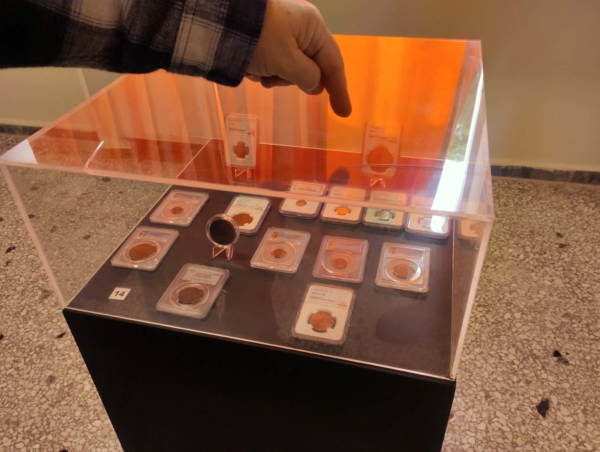 Κατά τη διάρκεια των εγκαινίων ο δήμαρχος Δυτικής Λέσβου, Ταξιάρχης Βέρρος, -συλλέκτης και ο ίδιος- μοιράστηκε γνώσεις και πολύτιμες πληροφορίες για τα εκθέματα, αναδεικνύοντας τη σημασία τους και τη σχέση τους με τα γεγονότα της εποχής. Ιδιαίτερη θέση στην έκθεση κατέχουν ο Φοίνικας του Ιωάννη Καποδίστρια (1828) και οι πρώτες δραχμές του βασιλιά Όθωνα (από το 1833), ενώ ξεχωρίζουν και τα πρώτα ελληνικά γραμματόσημα «Κεφαλές του Ερμή» (1861). Τα νομίσματα προέρχονται από ιδιωτική συλλογή, ενώ τα γραμματόσημα παρουσιάζονται με την επιμέλεια της Φιλοτελικής Εταιρείας Λέσβου.