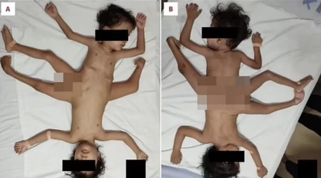 Μια σπάνια περίπτωση σιαμαίων που γεννήθηκαν στην Ινδονησία έφερε στη δημοσιότητα το American Journal of Case Reports καθώς τα δύο αγόρια που γεννήθηκαν το 2018 είχαν τρία πόδια (τα δύο λειτουργικά και το τρίτο όχι), τέσσερα χέρια ενώ μοιράζονται το πέος με την εικόνα τους να θυμίζει «αράχνη».