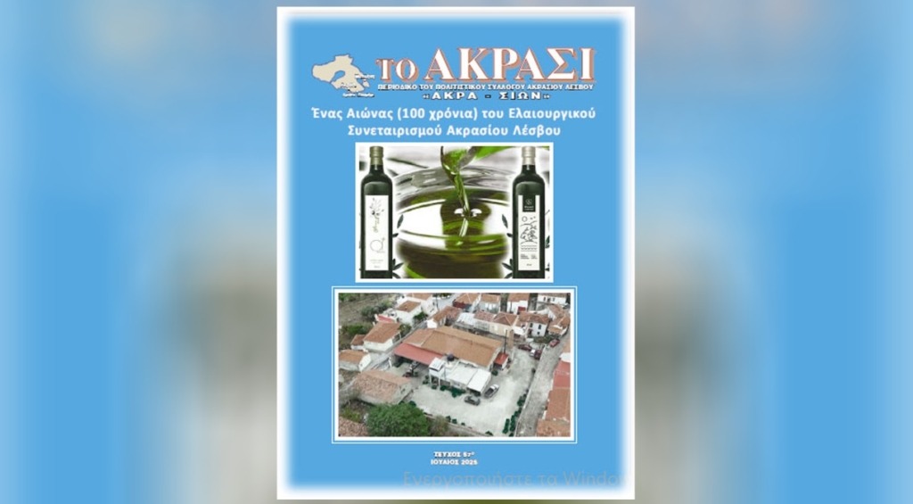 Κυκλοφόρησε σε ηλεκτρονική μορφή το περιοδικό «ΤΟ ΑΚΡΑΣΙ», του Πολιτιστικού Συλλόγου Ακρασίου Λέσβου με πλούσια ύλη και έγχρωμες και ασπρόμαυρες φωτογραφίες σχετικές με την ζωή του γραφικού ορεινού χωριού.