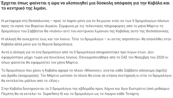 Από τον προσεχή Μάρτιο φαίνεται πως ξεκινά η ακτοπλοίκή σύνδεση των νησιών του Βορείου Αιγαίου με τη Θεσσαλονίκη, σύμφωνα με δημοσίευμα της «Πρωινής».