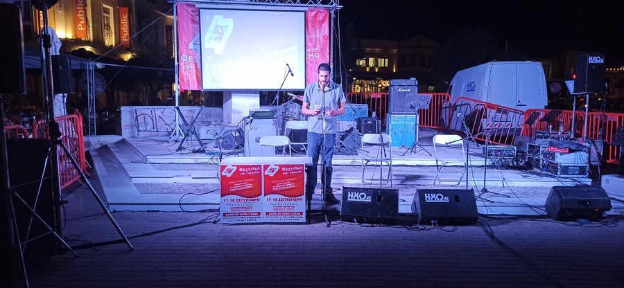Οι εκδηλώσεις άνοιξαν με χαιρετισμό από τον Δημήτρη Ευσταθίου, γραμματέα της Τομεακής Οργάνωσης Λέσβου της ΚΝΕ, ο οποίος καλωσόρισε τους επισκέπτες τονίζοντας στην ομιλία του: