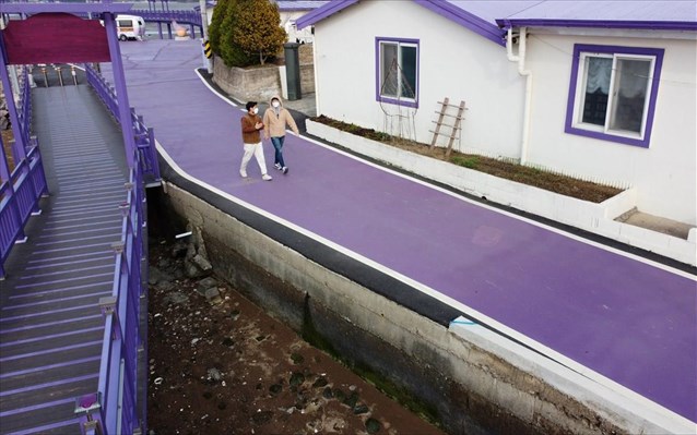Εμπνευσμένοι από το τοπικό λουλούδι που μοιάζει με μπαλόνι, οι κάτοικοι των Νήσων Μπανγουόλ και Μπάκγι της Νότιας Κορέας, γνωστά ως «μωβ νησιά», έβαψαν τα σπίτια, τους δρόμους και τις γέφυρες τους σε αποχρώσεις του μωβ και φύτεψαν μωβ άνθη όπως λεβάντα και άστερ για να μεταμορφώσουν την πόλη τους σε τουριστικό αξιοθέατο.