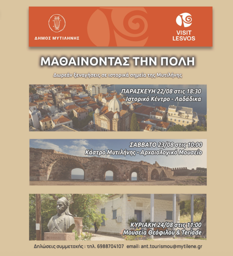 Νέες δωρεάν ξεναγήσεις σε σημεία ιστορικού και πολιτιστικού ενδιαφέροντος από τον Δήμο Μυτιλήνης
