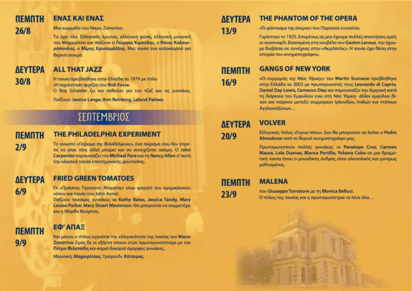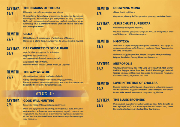 Εφέτος την επιλογή των ταινιών έκανε ένας από τους πρωτομάστορες της δράσης αυτής ο Γιάννης Τσαμπάνης, πρώην εργαζόμενος στην Περιφέρεια Βορείου Αιγαίου. Δημόσια τα ευχαριστώ μας για την πολύτιμη βοήθεια του!