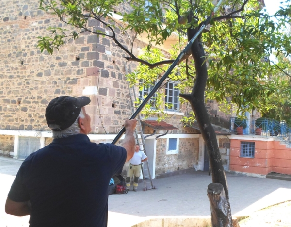 # Ο κ. Άγγελος (Σιδεράς) είναι ο ….καλός μας Άγγελος. Μας έμαθε πώς να λιπάνουμε τον σχολικό κήπο με κοπριά, κλαδεύει τις πορτοκαλιές μας και μας τοποθέτησε σύστημα στάγδην άρδευσης για να ποτίζονται τα δέντρα και τα φυτά της σχολικής αυλής.