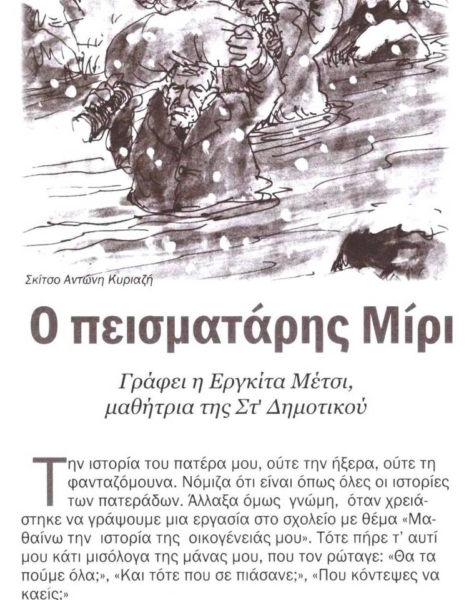 που ξεχειλίζει σε κάθε του λόγο, τον έκανε διήγημα μια μαθήτριά μας -η Εργκίτα Μέτσι-που φοιτά στην Β΄ Γυμνασίου.