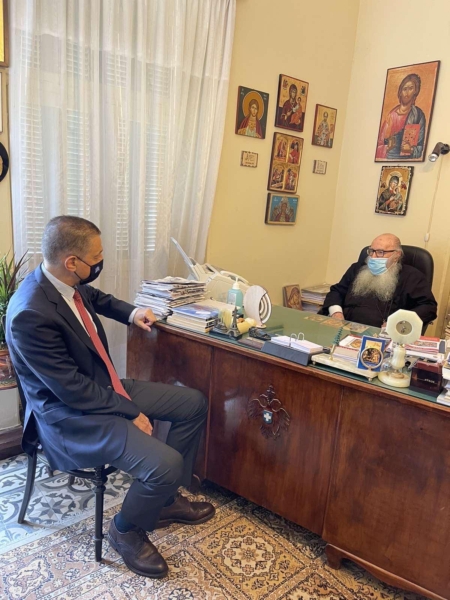 Στο πλαίσιο ανάπτυξης δράσεων εξωστρέφειας του Υπουργείου Εθνικής Άμυνας, με σκοπό την αμοιβαία αξιοποίηση δυνατοτήτων επ’ ωφελεία της Πατρίδας και της κοινωνικής προσφοράς στις τοπικές κοινωνίες, ο Υφυπουργός Εθνικής Άμυνας, πραγματοποίησε επίσης συναντήσεις με τους Μητροπολίτες Μυτιλήνης, Ερεσού & Πλωμαρίου κ.κ. Ιάκωβο, Μηθύμνης κ.κ. Χρυσόστομο, τον Δήμαρχο Δυτικής Λέσβου κ. Ταξιάρχη Βέρρο και τους Προέδρους των Δημοτικών Κοινοτήτων Μόριας κ. Ιωάννη Μαστρογιάννη και Παναγιούδας κ. Ευάγγελο Βιόλατζη. Επιπλέον, επισκέφθηκε τη Δημοτική Κοινότητα της Αγιάσου, όπου συνομίλησε με κατοίκους.
