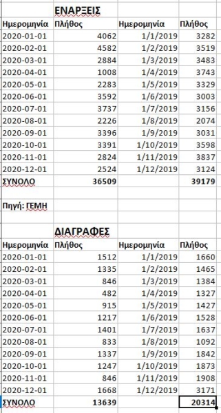 Η αισιόδοξη ματιά είναι ότι ακόμα και σε αυτήν την εξαιρετικά δύσκολη χρονιά, οι ενάρξεις επιχειρήσεων ήταν υπερδιπλάσιες των διαγραφών, δείγμα του ότι υπάρχουν αντοχές, οι οποίες δεν πρέπει, όμως, να εξαντληθούν. Σύμφωνα με τα στοιχεία του ΓΕΜΗ, στη διάρκεια του 2020 πάνω από 36.500 επιχειρήσεις ξεκίνησαν δραστηριότητα, ενώ εκείνες που κατέβασαν ρολά μόλις που ξεπέρασαν τις 13.600. Μια σύγκριση με τα αντίστοιχα μεγέθη του 2019 δείχνει ότι η αγορά «βάστηξε».