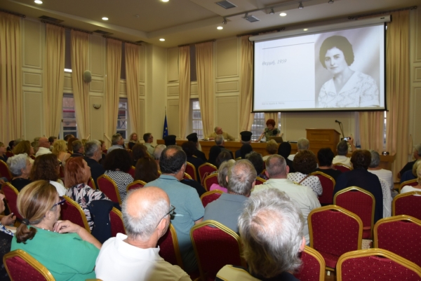 Η Αγγελική Ράλλη, ομότιμη καθηγήτρια Γλωσσολογίας του Πανεπιστημίου Πατρών παρουσίασε τη ζωή της μητέρας της συγγραφέως αλλά και την ιδιαίτερη σχέση της με το Μικρασιατικό Μοσχονήσι τόπο καταγωγής της. Το στοιχείο αυτό σύμφωνα με την κ. Ράλλη στιγμάτισε το συγγραφικό της έργο τόσο το πεζό όσο και το ποιητικό.
