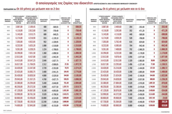 Συνεπώς, όπως βλέπουμε στον πίνακα με παράδειγμα μηνιαίου ενοικίου 500 ευρώ: