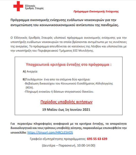 Πρόγραμμα οικονομικής ενίσχυσης ευάλωτων νοικοκυριών για την αντιμετώπιση του κοινωνικοοικονομικού αντίκτυπου της πανδημίας.