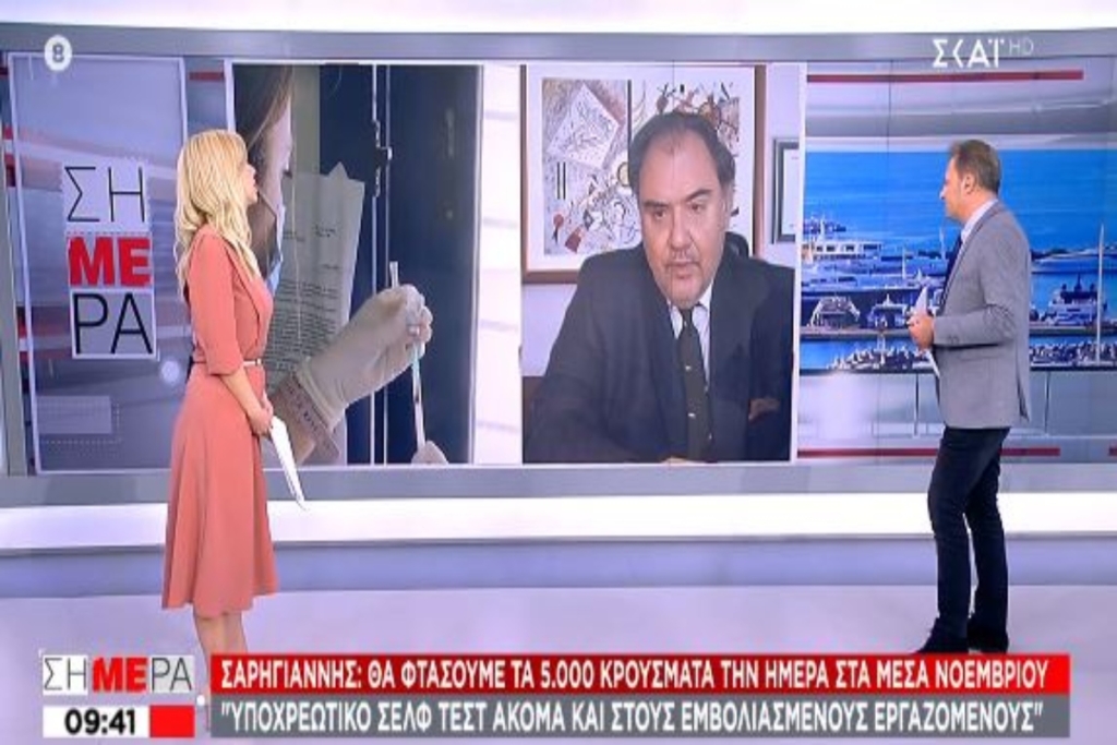 Σαρηγιάννης: Υποχρεωτικό self test ακόμη και από τους εμβολιασμένους εργαζόμενους – Μέσα Νοεμβρίου θα έχουμε 5.000 κρούσματα