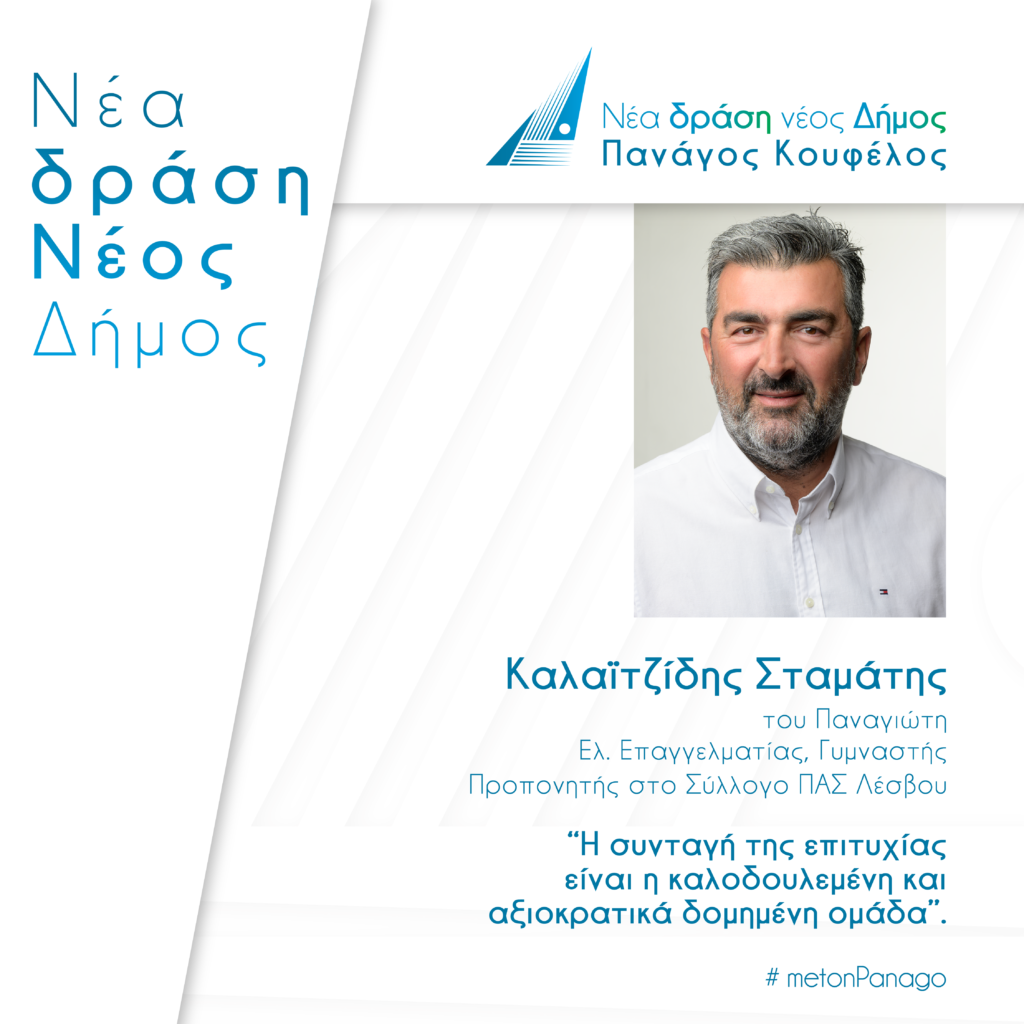 Σταμάτης Καλαϊτζιδης, Υποψήφιος Δημοτικός Σύμβουλος με επικεφαλής τον Πανάγο Κουφέλο “Έχω όρεξη για προσφορά στον τόπο μου, πάντα με γνώμονα το κοινό καλό”