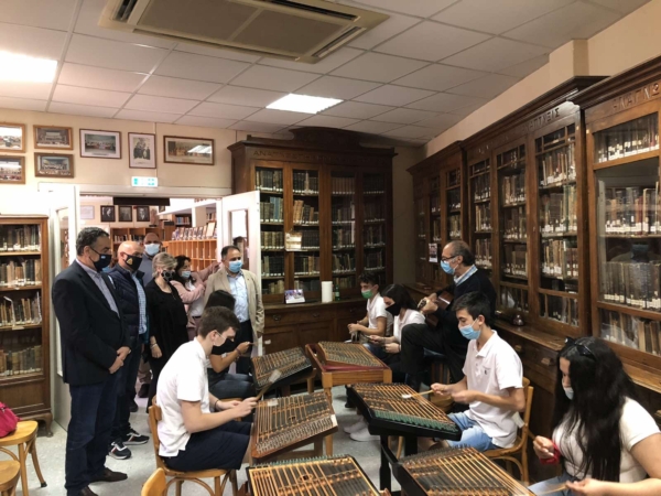 Επόμενος σταθμός της επίσκεψης ήταν το Αναγνωστήριο της Αγιάσου όπου τον υποδέχτηκε ο Πρόεδρος κ Κλεάνθης Κορομηλάς και τον ευχαρίστησε θερμά για την παρέμβασή του στον Γενικό Γραμματέα Αιγαίου και Νησιωτικής Πολιτικής κ Μανώλη Κουτουλάκη ώστε να καλυφθεί το χρηματοδοτικό κενό του προϋπολογισμού για την εκτέλεση των έργων αποκατάστασης των ζημιών του κτηρίου καθώς επίσης και για την αποτροπή απένταξης του. Ευχάριστη έκπληξη ήταν η υποδοχή που του επιφύλαξαν τα διάσημα σαντούρια του Αναγνωστηρίου με τους παραδοσιακούς σκοπούς τους.