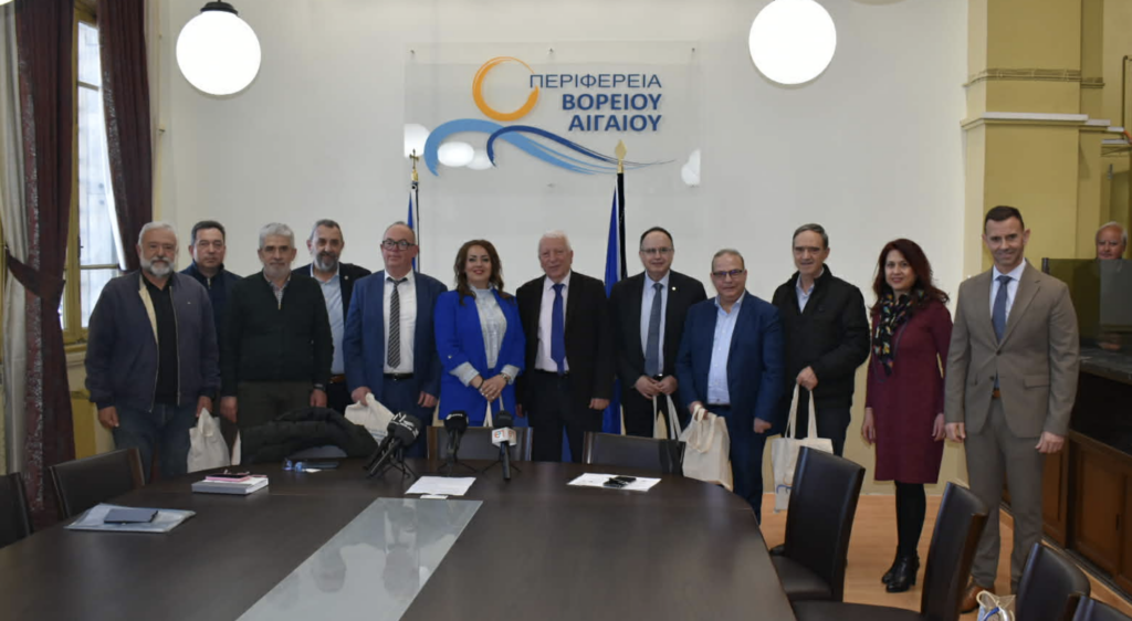 Ο Περιφερειάρχης Βορείου Αιγαίου Κωνσταντίνος Μουτζούρης συναντήθηκε σήμερα με εκπροσώπους Επιμελητηρίων από το Βόρειο Αιγαίο και την Θεσσαλία με βασικό θέμα συζήτησης την ακτοπλοϊκή σύνδεση των νησιών του Βορείου Αιγαίου με τον Βόλο.