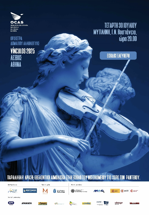 Το Νοσοκομείο Μυτιλήνης και το Φεστιβάλ Μολύβου, με την υποστήριξη της Ορχήστρας Δωματίου του Σιέρο της Ισπανίας (OCAS), διοργανώνουν μια ξεχωριστή συναυλία κλασικής μουσικής στον αύλειο χώρο του Νοσοκομείου, την Τρίτη 30 Ιουλίου 2025 και ώρα 20:00. Η εκδήλωση τελεί υπό την αιγίδα της Περιφέρειας Βορείου Αιγαίου, με ελεύθερη είσοδο για το κοινό.