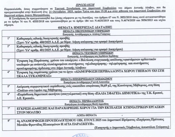 ΤΟΠΙΚΗ ΑΥΤΟΔΙΟΙΚΗΣΗ - 20/10/2025 - 11:02 πμ
