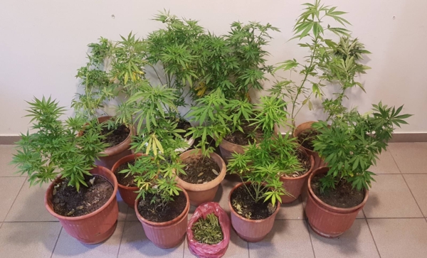 Ειδικότερα, μετά από κατάλληλη αξιολόγηση και αξιοποίηση στοιχείων, πραγματοποιήθηκε έρευνα, παρουσία δικαστικού λειτουργού και με τη συνδρομή του αστυνομικού σκύλου “KULLO”, στην οικία του συλληφθέντα στην παραπάνω περιοχή, στο πλαίσιο της οποίας βρέθηκαν στον αύλειο χώρο και εντός αυτής και κατασχέθηκαν, έντεκα (11) δενδρύλλια κάνναβης, ύψους από 55 εκατοστά έως 1 μέτρο, καλλιεργούμενα σε γλάστρες από τον ίδιο καθώς και φυτικά αποσπάσματα κάνναβης, βάρους -16- γραμμαρίων.