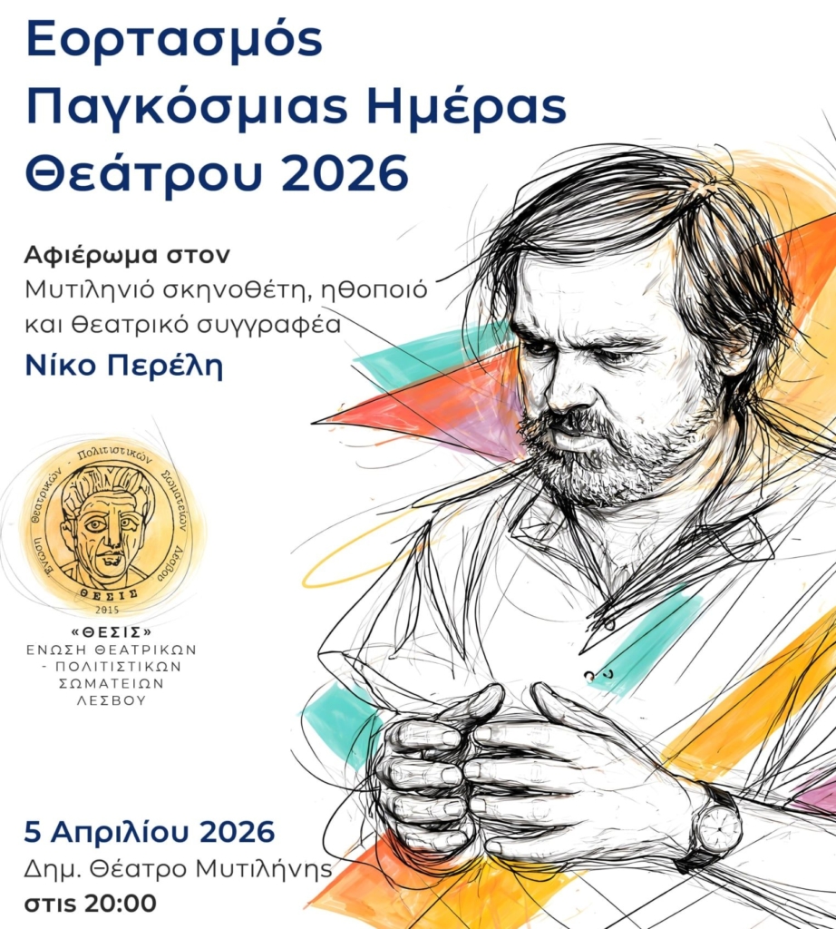 Στον σπουδαίο Μυτιληνιό θεαντράνθρωπο (συγγραφέα, σκηνοθέτη, μελετητή και ηθοποιό) Νίκο Περέλη που έφυγε από τη ζωή πριν από λίγους μήνες, είναι ο φετινός εορτασμός της παγκόσμιας ημέρας θεάτρου από την Ένωση Θεατρικών Πολιτιστικών Σωματείων Λέσβου.Η εκδήλωση θα πραγματοποιηθεί στο Δημοτικό Θέατρο Μυτιλήνης την ερχόμενη Κυριακή 5 Απριλίου στις 8 το βράδυ με ελεύθερη είσοδο για το κοινό.