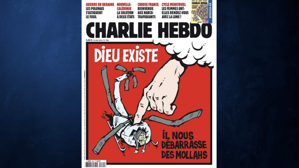 Η γαλλική σατιρική εβδομαδιαία εφημερίδα Charlie Hebdo , γνωστή για την ασέβειά της, το έκανε ξανά: μετά το δυστύχημα με ελικόπτερο στο οποίο έχασε τη ζωή του ο πρόεδρος του Ιράν, Εμπραχίμ Ραϊσί , δημοσίευσε ένα αμφιλεγόμενο εξώφυλλο με τίτλο: «Ο Θεός υπάρχει».
