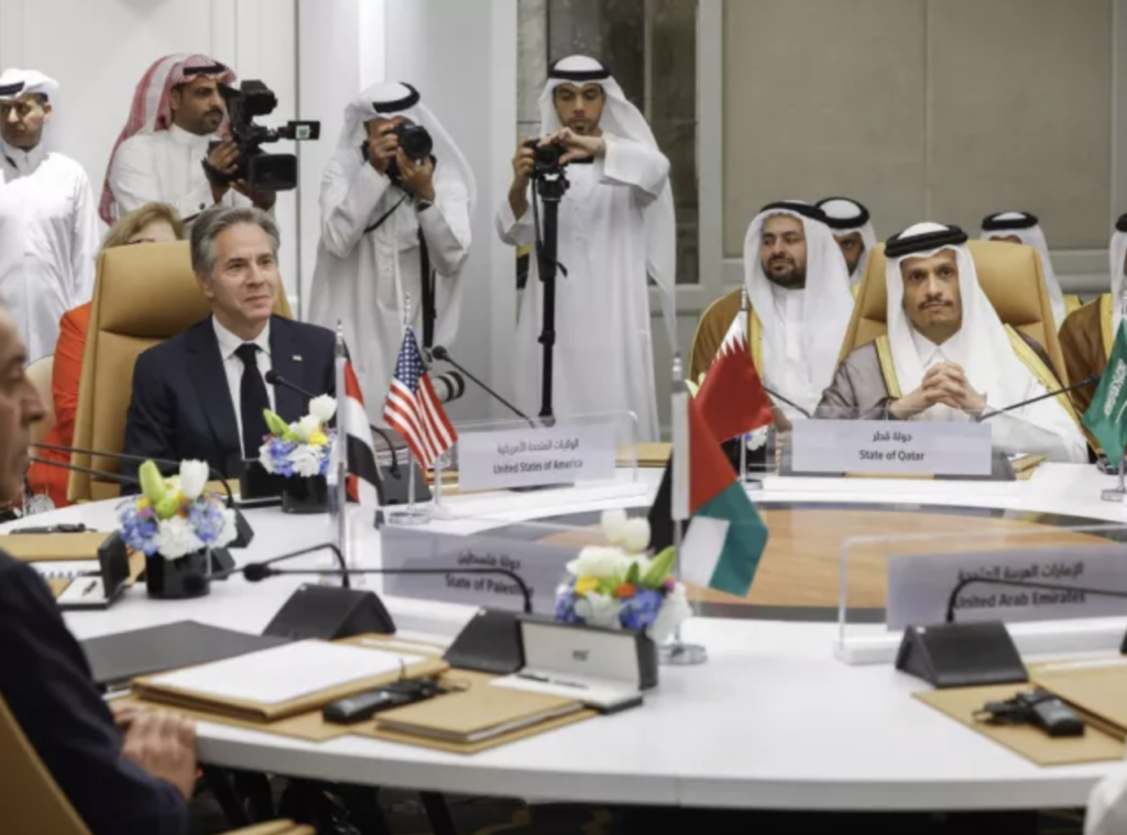 Ο υπουργός Εξωτερικών των ΗΠΑ Άντονι Μπλίνκεν και οι υπουργοί Εξωτερικών που εκπροσωπούσαν την ομάδα των «Αραβικών Έξι» συναντήθηκαν στο περιθώριο του Παγκόσμιου Οικονομικού Φόρουμ (WEC) στο Ριάντ τον Απρίλιο για να συζητήσουν ένα όραμα για την «επόμενη ημέρα» του πολέμου στη Γάζα, σύμφωνα με σαββατιάτικο δημοσίευμα του Al-Ahkbar, που πρόσκειται στη Χεζμπολάχ και επικαλείται έγγραφο που έλαβε το λιβανέζικο δημοσίευμα.